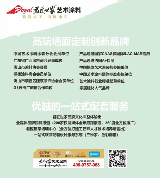 君匠世家藝術(shù)涂料生態(tài)環(huán)保,獨有的智能生態(tài)粒子技術(shù),可以根據(jù)環(huán)境的不同,從而產(chǎn)生不同的效果,同時具有降解甲醛、呼吸調(diào)濕、保溫隔熱、凈化空氣的作用。藝術(shù)涂料不但自身無毒無害,還使得室內(nèi)環(huán)境干凈無害,還居住者一個健康環(huán)保的生活空間。