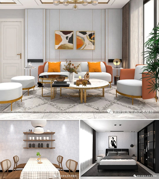 君匠世家藝術涂料——“巴洛克絲綢五代”特點:耐水擦洗、防潮防霉、環(huán)保無污染等