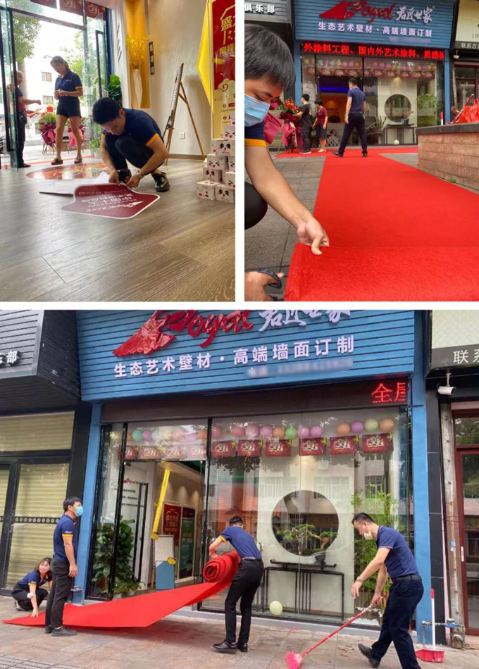 君匠世家藝術(shù)壁材始終秉持“開放共贏”的合作理念,全程幫扶每一位熱情加盟的代理商,并肩作戰(zhàn)打造好門店服務(wù)特色。在本次開店前,君匠世家總部團隊親自來到代理商身邊參與指導和協(xié)助,為選址考察提供經(jīng)驗參考、載入3D云設(shè)計系統(tǒng)、引導店內(nèi)的整體設(shè)計布局、進行店面導購員培訓和營銷技巧講解、開業(yè)典禮布置和促銷活動策劃……真正做到了渠道下沉和實力賦能終端。