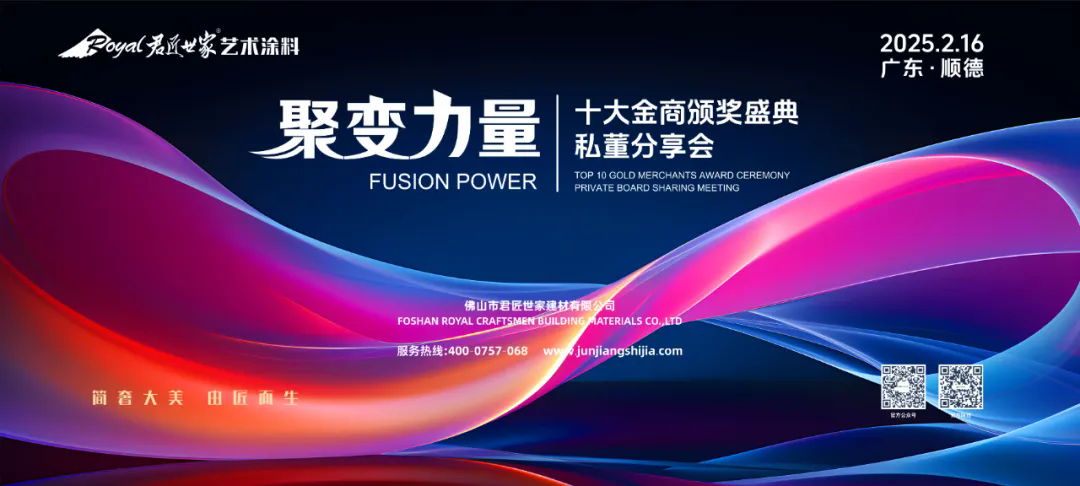2 月 16 日,讓我們相聚在君匠世家“聚變力量·十大金商頒獎盛典 - 私董分享會”,共同見證榮耀時刻的到來,開啟品牌與經(jīng)銷商攜手并進的新征程。共同書寫藝術(shù)涂料行業(yè)的新篇章,共繪屬于我們的輝煌未來。