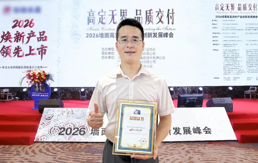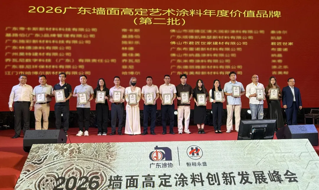 在備受矚目的“2026廣東省涂料與油墨行業(yè)協(xié)會行業(yè)表彰大會”環(huán)節(jié),君匠世家榮獲“2026廣東墻面高定藝術(shù)涂料年度價值品牌”榮譽稱號。