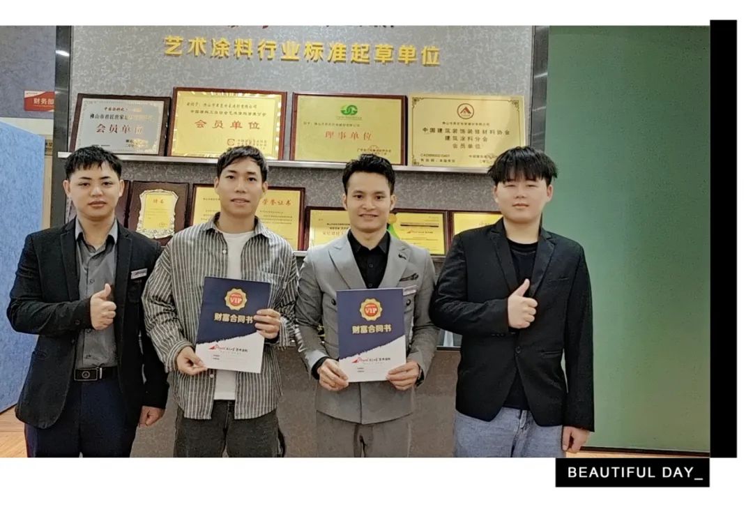 梁總經(jīng)過多方面打聽、考察驗證,了解到君匠世家藝術涂料作為藝術涂料的代表企業(yè),有完善的產(chǎn)品體系和培訓體系,以及強大的后端服務能力。所以決定加入君匠大家庭,成為江門蓬江區(qū)域經(jīng)銷商。